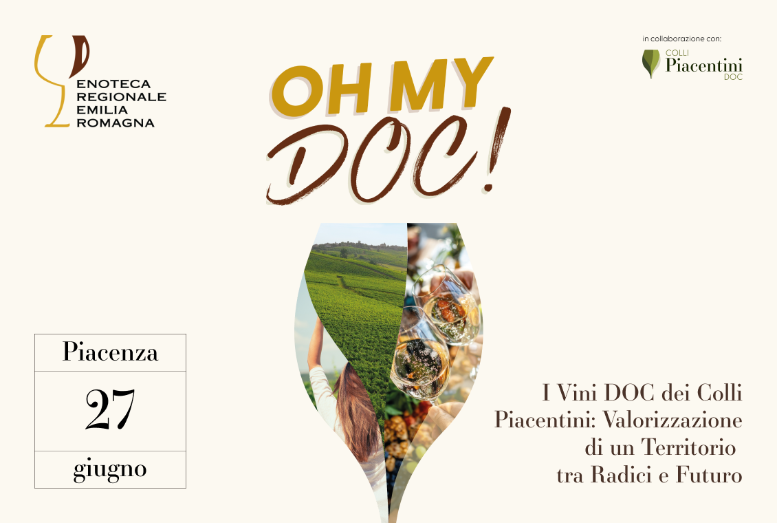 In occasione dei Venerdì Piacentini, Enoteca Regionale Emilia Romagna, in collaborazione con il Consorzio Vini DOC Colli Piacentini, presenta Oh My DOC, un evento che celebra i vini DOC piacentini e il legame profondo tra tradizione vitivinicola e identità territoriale.