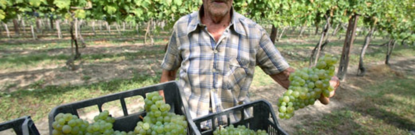 Il Trebbiano è il vitigno a bacca bianca più coltivato in Emilia Romagna, in particolare nella provincia di Ravenna. Si tratta di un vitigno molto produttivo e resistente ai parassiti, che dà origine a un vino di colore giallo paglierino, di discreto grado alcolico, non particolarmente ricco dal punto di vista aromatico. Il Trebbiano romagnolo è adatto per la produzione di vini fermi ma anche di vini base per spumanti e per la distillazione del brandy. In Emilia Romagna il Trebbiano Romagnolo è componente importante di un numero di bianchi doc fermi e frizzanti, sia dolci che secchi, ma per conoscerne a fondo le caratteristiche consigliamo di assaggiare un Romagna Trebbiano e il Colli di Imola Trebbiano, prodotti con un minimo dell’85% di quest’uva.